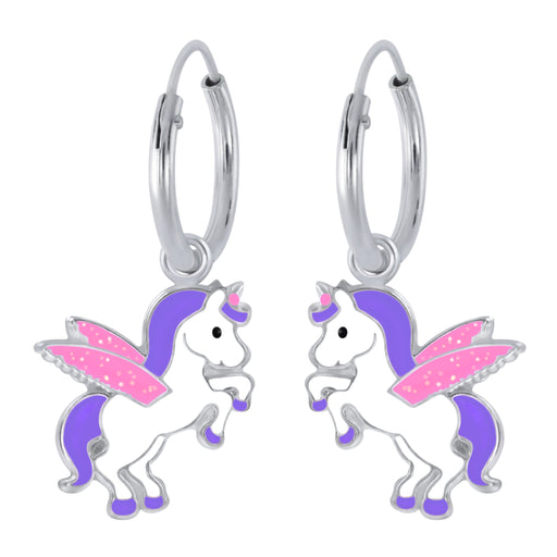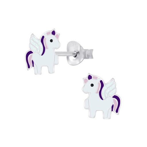 Alle gegevens bekijkenJoy|S - Zilveren unicorn paardje oorbellen wit paars eenhoorn met vleugeltjes