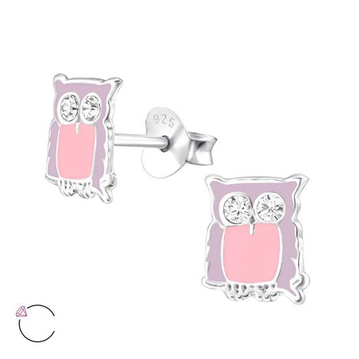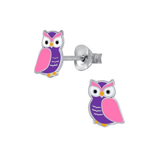 Alle gegevens bekijkenJoy|S - Zilveren uil oorbellen - paars met roze kroontje - 8.5 x 10 mm - kristal - kinderoorbellen