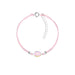 Sterling zilver 925 donut bedel armband met zilver kraaltjes. Verwerkt met een roze nylon koord.