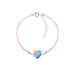 Sterling zilver 925 gestreept hartje bedel armband met zilver kraaltjes. Verwerkt met een roze nylon koord.