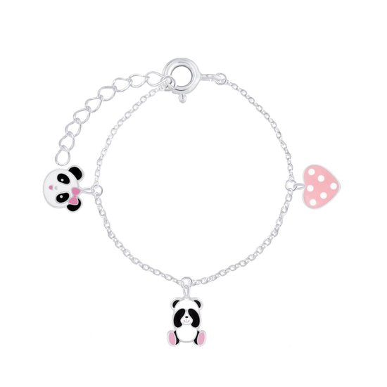 Sterling zilver 925 Bedel armband - 2 panda's - hartje roze met witte stipjes