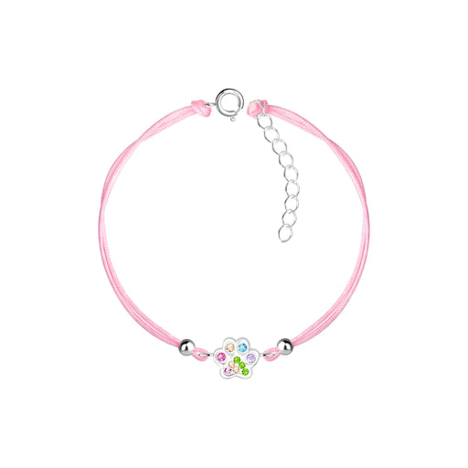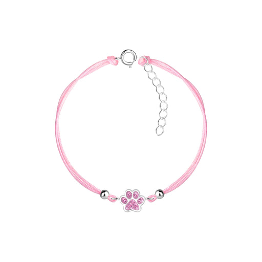 Sterling zilver 925 dierenpoot bedel armband met kristal en zilver kraaltjes. Verwerkt met een roze nylon koord. Grootte dierenpoot: 8 mm x 8 mm Ma...