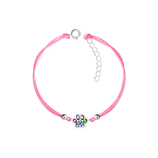 Sterling zilver 925 dierenpoot bedel armband met kristal en zilver kraaltjes. Verwerkt met een fluor roze nylon koord. Grootte dierenpoot: 8 mm x 8...