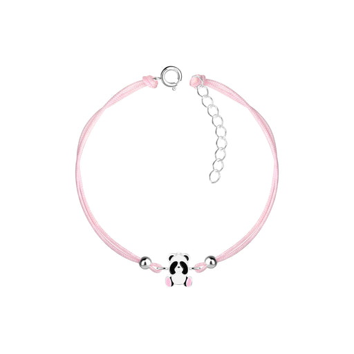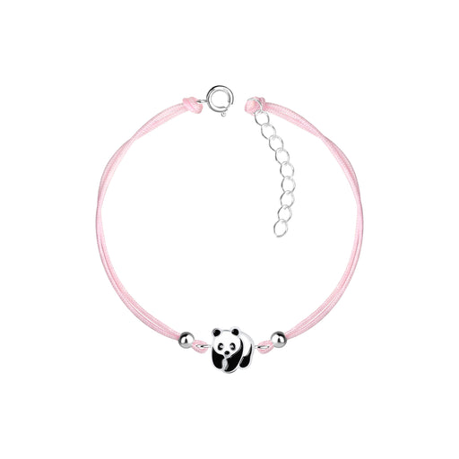 Sterling zilver 925 panda bedel armband met zilver kraaltjes. Verwerkt met een roze nylon koord. Grootte panda: 8 mm x 9 mm Materiaal: Sterling zil...