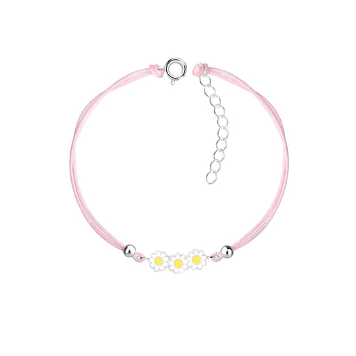 Alle gegevens bekijkenJoy|S - Zilveren madeliefje bloem bedel armband - bloemetjes bedel sterling zilver 925 - roze koord - th30