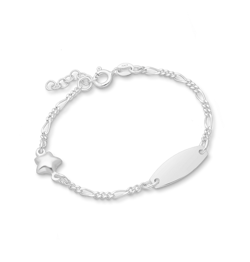 Alle gegevens bekijkenJoy|S - Zilveren kinder armband - graveerarmband voor kinderen - plaat 7 mm - ster - figaro schakel - leeftijd 3 tot 6 jaar - maat: zie omschrijving