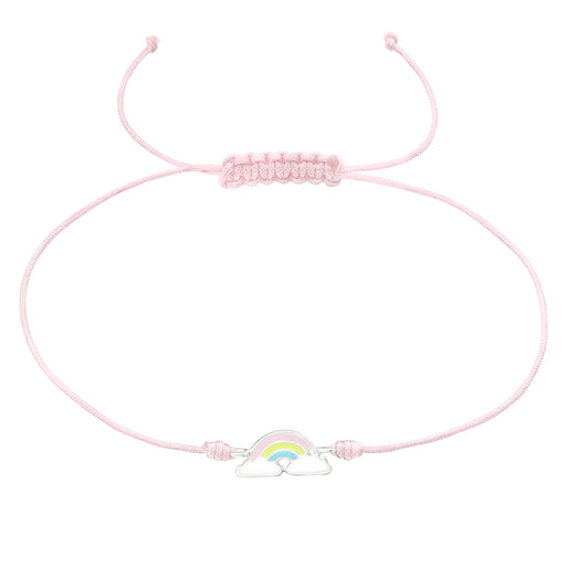 Sterling zilver 925 regenboog bedel armband. Verwerkt met een roze nylon koord verstelbaar. Grootte regenboog: 9 mm x 6 mm Materiaal: Sterling zilv...