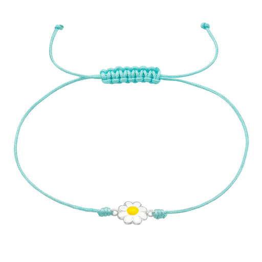 Sterling zilver 925 Madelief bloem bedel armband. Verwerkt met een turquoise nylon koord verstelbaar. Grootte bloem: 8 mm x 8 mm Materiaal: Sterlin...