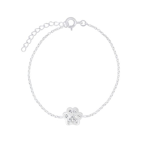 Sterling zilver 925 kinderarmband - Dierenpoot met kristal Grootte dierenpoot: 9 x 9 mm Bewerking: E-Coat Lengte: 14 cm + 3 cm extension Verpakt i...