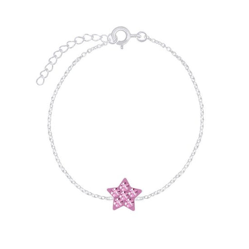 Alle gegevens bekijkenJoy|S - Zilveren ster armband roze kristal - 14 cm + 3 cm extension