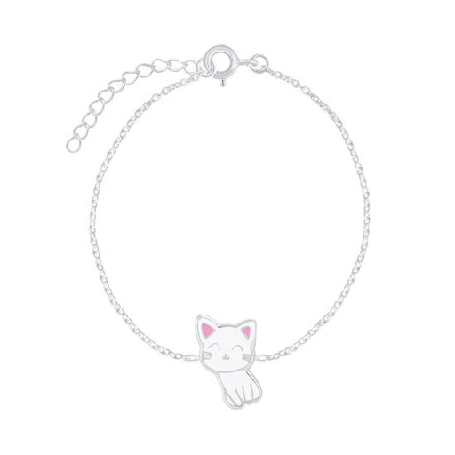 Sterling zilver 925 kinderarmband witte kat/ poes. Grootte kat: 7 x 13 mm Bewerking: E-Coat Lengte: 14 cm + 3 cm extension Verpakt in een bijbehore...