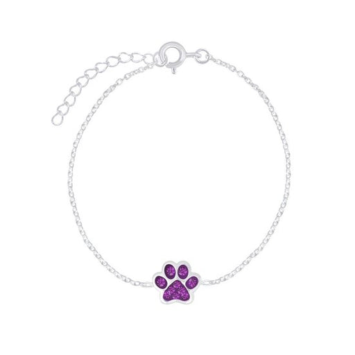 Sterling zilver 925 kinderarmband - Dierenpoot met paars kristal Grootte dierenpoot: 9 x 9 mm Bewerking: E-Coat Lengte: 14 cm + 3 cm extension Ver...