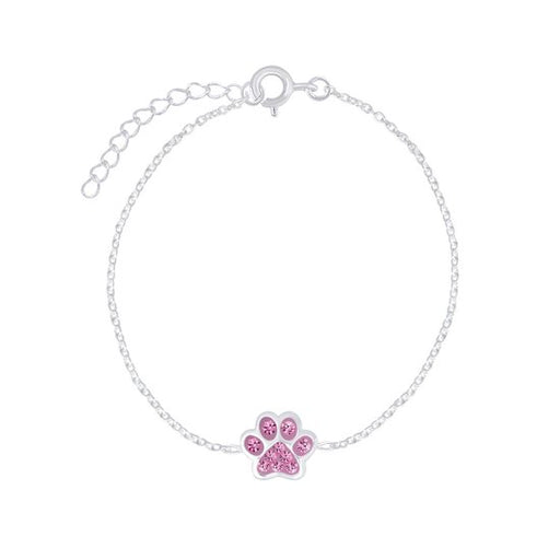Sterling zilver 925 kinderarmband - Dierenpoot met roze kristal Grootte dierenpoot: 9 x 9 mm Bewerking: E-Coat Lengte: 14 cm + 3 cm extension Verp...