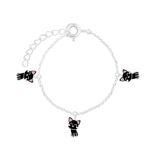 Sterling zilver 925 kat / poes bedel armband, 3 bedeltjes zwart Materiaal: Sterling zilver 925 Afwerking: E-coat Afmeting bedels: 7 mm x 13 mm Leng...