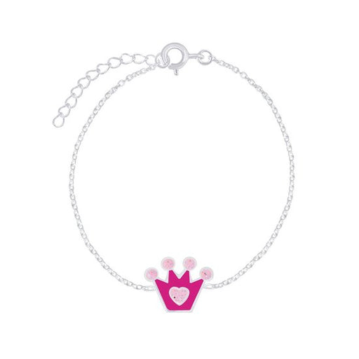 Alle gegevens bekijkenJoy|S - Zilveren kroontje armband 14 cm + 3 cm extension - roze met glitter