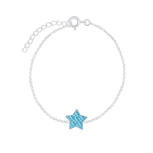 Sterling zilver 925 ster armband met kristal blauw Grootte ster: 6.5 mm x 6.5 mm Materiaal: Sterling zilver 925 Bewerking: E-Coat Lengte armband: 1...