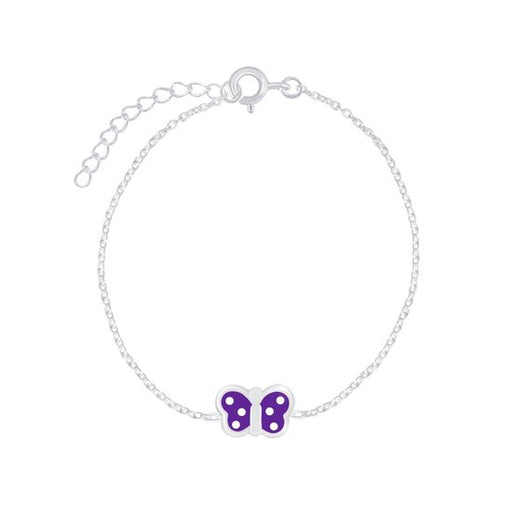 Sterling zilver 925 kinderarmband vlinder paars met witte stippen Grootte vlinder: 7 x 9 mm Bewerking: E-Coat Lengte: 14 cm + 3 cm extension Verpak...
