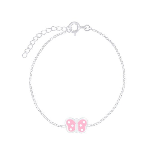 Sterling zilver 925 kinderarmband vlinder roze met witte stipjes Materiaal : 925 sterling zilver Afwerking : E-coat Afmeting vlinder: 8 mm x 5 mm ...