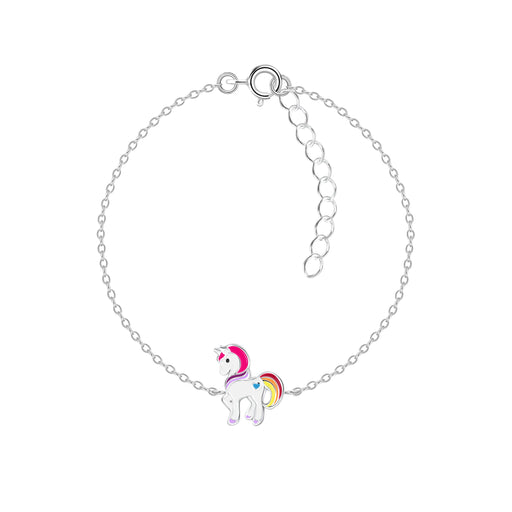 Sterling zilver 925 kinder armband Unicorn / Pony. Grootte pony: 7 x 10 mm Bewerking: E-Coat Lengte: 14 cm + 3 cm extension Verpakt in een bijbeho...