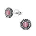 Sterling zilver 925 Bali ronde oorbellen geoxideerd met roze calcedoon.