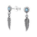 Sterling zilver 925 veer bedel oorbellen - oorknoppen met veer bedel - zacht blauw synt opaal - geoxideerd.
