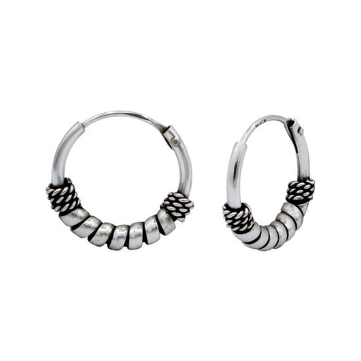 Sterling zilver 925 Bali oorringen. Afmeting: 14 mm doorsnede Materiaal: Sterling zilver 925 Afwerking: Geoxideerd, E-coat  Verpakt in een bijbehor...