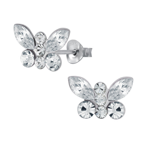 Sterling zilver 925 Vlinder oorbellen met kristal Design grootte: 12 mm x 8 mm Bewerking: E-Coat Materiaal: Sterling zilver 925 Steensoort: Kristal...