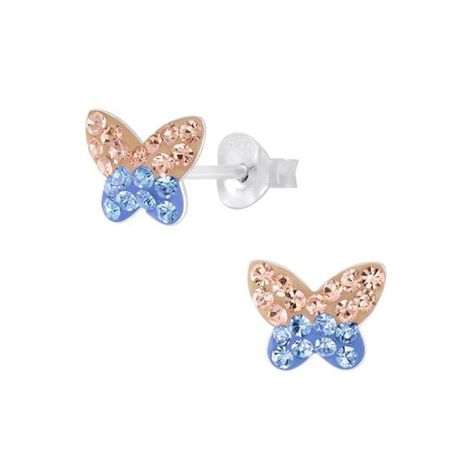Sterling zilver 925 vlinder oorbellen stud - bruin blauw kristal Design afmeting: 9 mm x 7 mm Bewerking: E-Coat Materiaal: Sterling zilver 925 Ve...