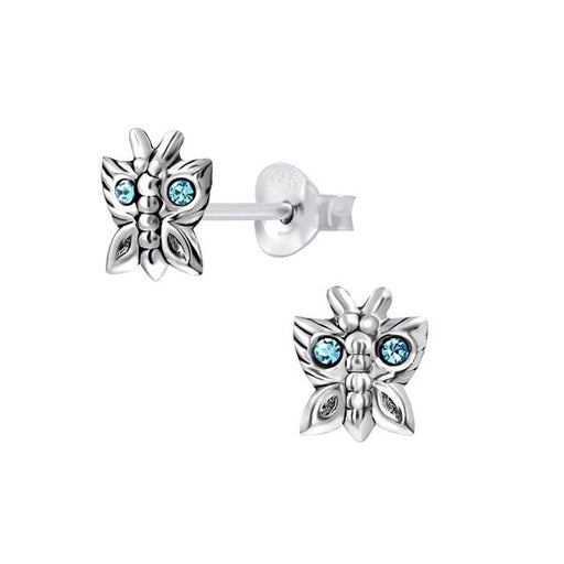 Alle gegevens bekijkenJoy|S - Zilveren vlinder oorbellen geoxideerd met blauw kristal 7 x 8 mm