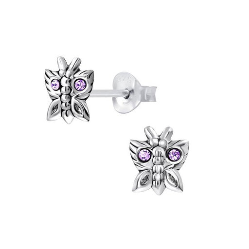 Alle gegevens bekijkenJoy|S - Zilveren vlinder oorbellen geoxideerd met paars kristal 7 x 8 mm