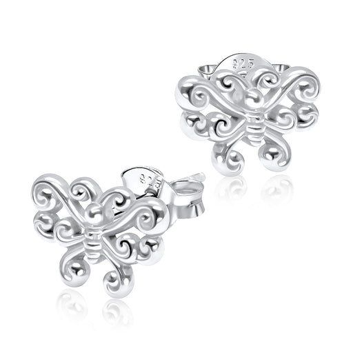 Sterling zilver 925 vlinder oorbellen. Materiaal : 925 sterling zilver Afwerking : E-coat Grootte: 10 mm x 10 mm Verpakt in een bijbehorend sierad...