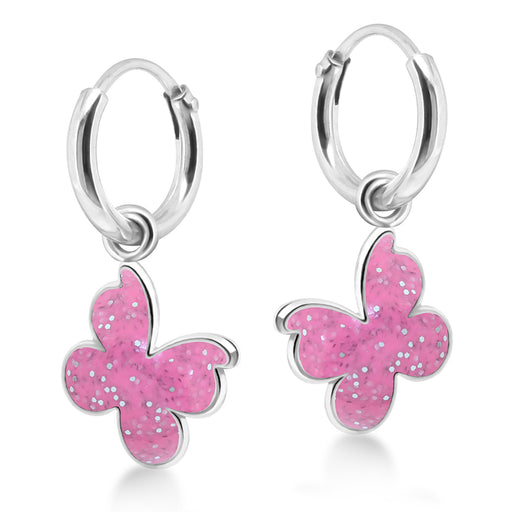 Alle gegevens bekijkenJoy|S - Zilveren vlinder bedel oorbellen - met glitter - roze - oorringen