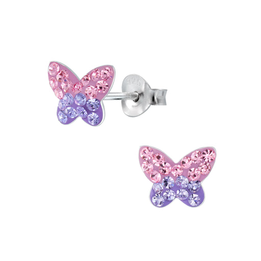Sterling zilver 925 vlinder oorbellen kristal roze paars. Materiaal : 925 sterling zilver Afwerking : E-coat Grootte: 8 mm x 9 mm Verpakt in een b...