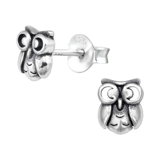 Joy|S - Zilveren uil oorknopjes - 5 x 6 mm - oorbellen - geoxideerd