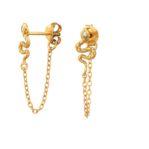 Alle gegevens bekijkenJoy|S - Zilveren slang oorbellen - met kettinkje - zirkonia - goudplating