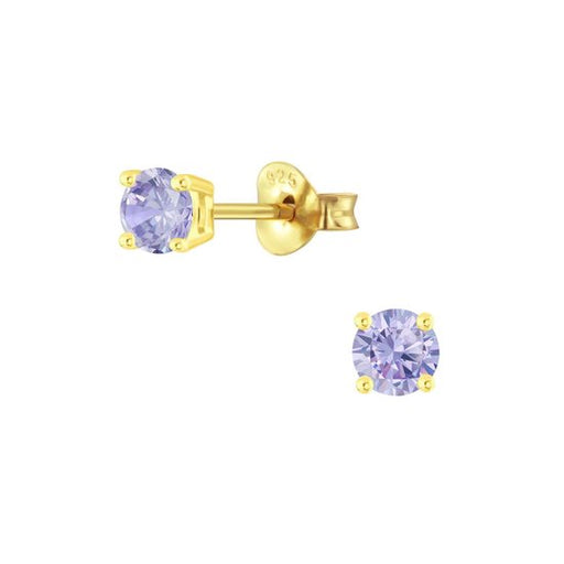 Sterling zilver 925 ronde oorbellen met zirkonia lavendel paars - goudplating Design grootte: 4 mm x 4 mm Bewerking: Gold plated, E-Coat Materiaal:...