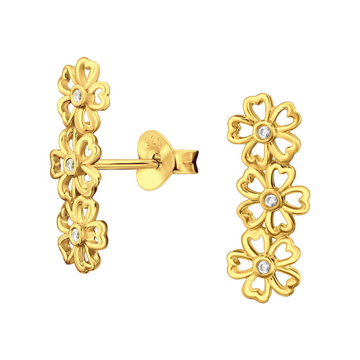 Sterling zilver 925 bloemen oorbellen met zirkonia - goudplating. Materiaal : 925 sterling zilver Afwerking : Gold plated, E-coat Afmeting: 6.5 mm ...