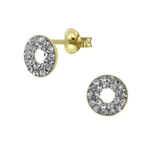 Sterling zilver 925 cirkel/ donut oorbellen goudplating Design grootte: 8 mm x 8 mm Bewerking: Gold plated, E-Coat Steensoort: Kristal - antraciet ...
