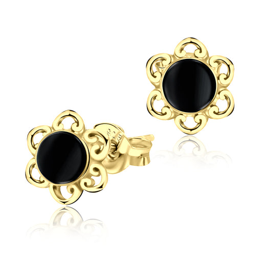 Alle gegevens bekijkenJoy|S - Zilveren bloem oorbellen - 8 mm - goudplating met zwart