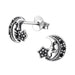 Sterling zilver 925 maan met ster - geoxideerd - oorbellen sierlijk bewerkt met zirkonia (zwart)