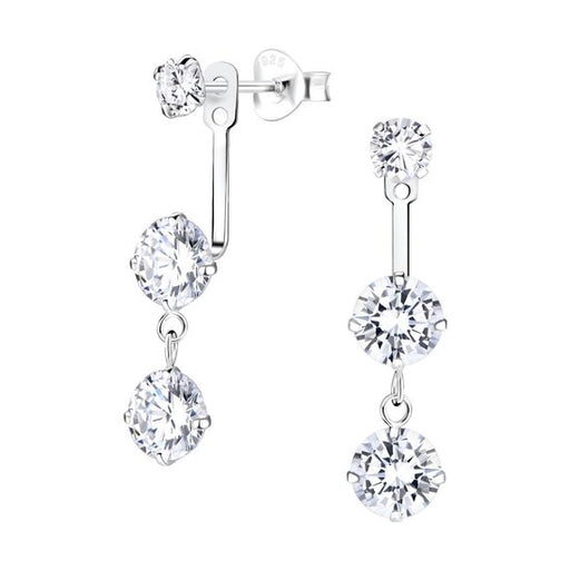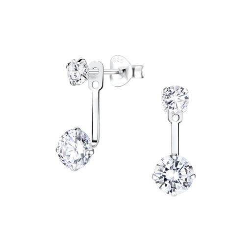 Sterling zilver 925 ear jackets - 2 ronde zirkonia's - 2 parts ook los te dragen als enkel knopje. Design Size: 6 mm x 19 mm Materiaal: Sterling Zi...