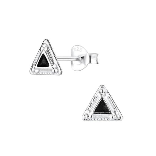 Alle gegevens bekijkenJoy|S - Zilveren driehoek oorbellen - zwart - 7 mm