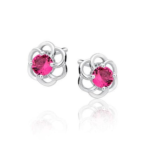 Alle gegevens bekijkenJoy|S - Zilveren elegante bloem oorbellen 8 mm robijn roze zirkonia - gehordineerd