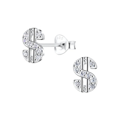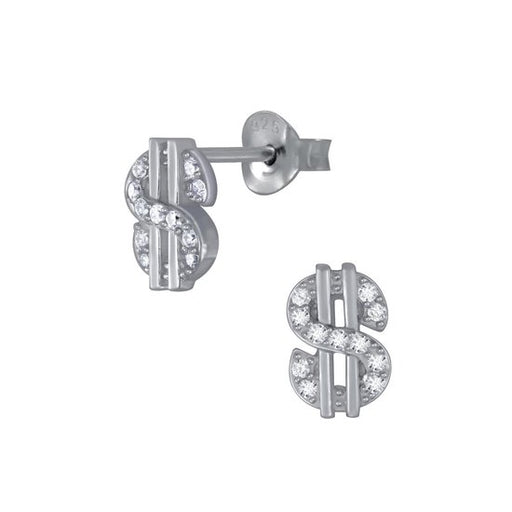 Alle gegevens bekijkenJoy|S - Zilveren dollar oorbellen - 5 x 8 mm - zirkonia - dollar teken oorknoppen