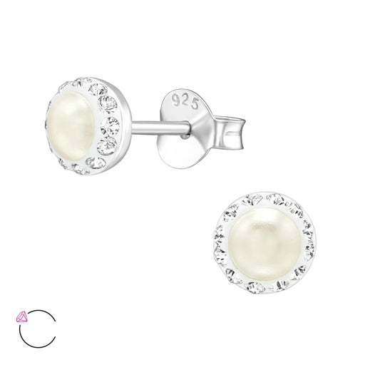 Sterling zilver 925 petit parel oorbellen- cream white met kristalletjes . Materiaal : 925 sterling zilver Afwerking : E-coat Grootte: 5 mm x 5 mm ...