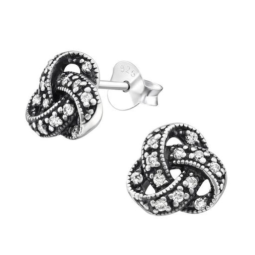 Sterling zilver 925 geoxideerde classic knoop oorbellen met zirkonia Afmeting: 8 mm x 8 mm Materiaal: Sterling zilver 925 Afwerking: Geoxideerd, E-...