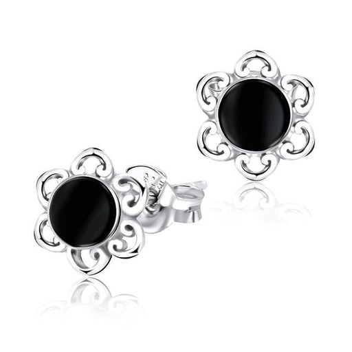 Alle gegevens bekijkenJoy|S - Zilveren bloem oorbellen - zilver zwart - 8 mm