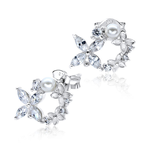 Alle gegevens bekijkenJoy|S - Zilveren bloem oorbellen met parel en kristal