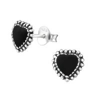 Sterling zilver 925 classic hartje oorbellen met zwart geoxideerd Afmeting: 7 mm x 7 mm Materiaal: Sterling zilver 925 Afwerking: Geoxideerd, E-coa...