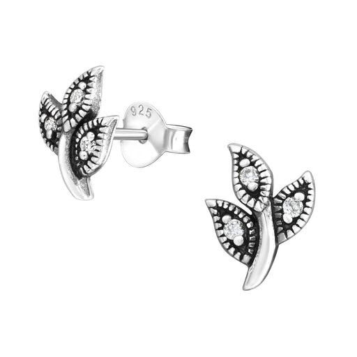 Sterling zilver 925 takje met blaadjes oorbellen - geoxideerd en ingelegd met zirkonia Afmeting design: 6 mm x 9 mm Materiaal: Sterling zilver 925 ...